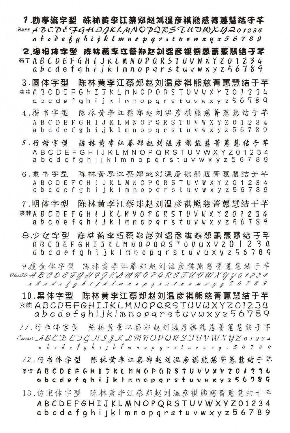 中英文字型30種